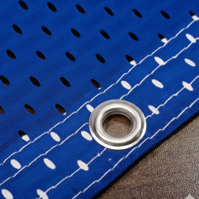 No. Wind slits (half-moon cuts) are actually counterproductive on mesh. Because the entire surface is already perforated with thousands of tiny holes, the wind passes through naturally. Adding manual slits would only weaken the structural integrity of the fabric and ruin the aesthetic of your design.